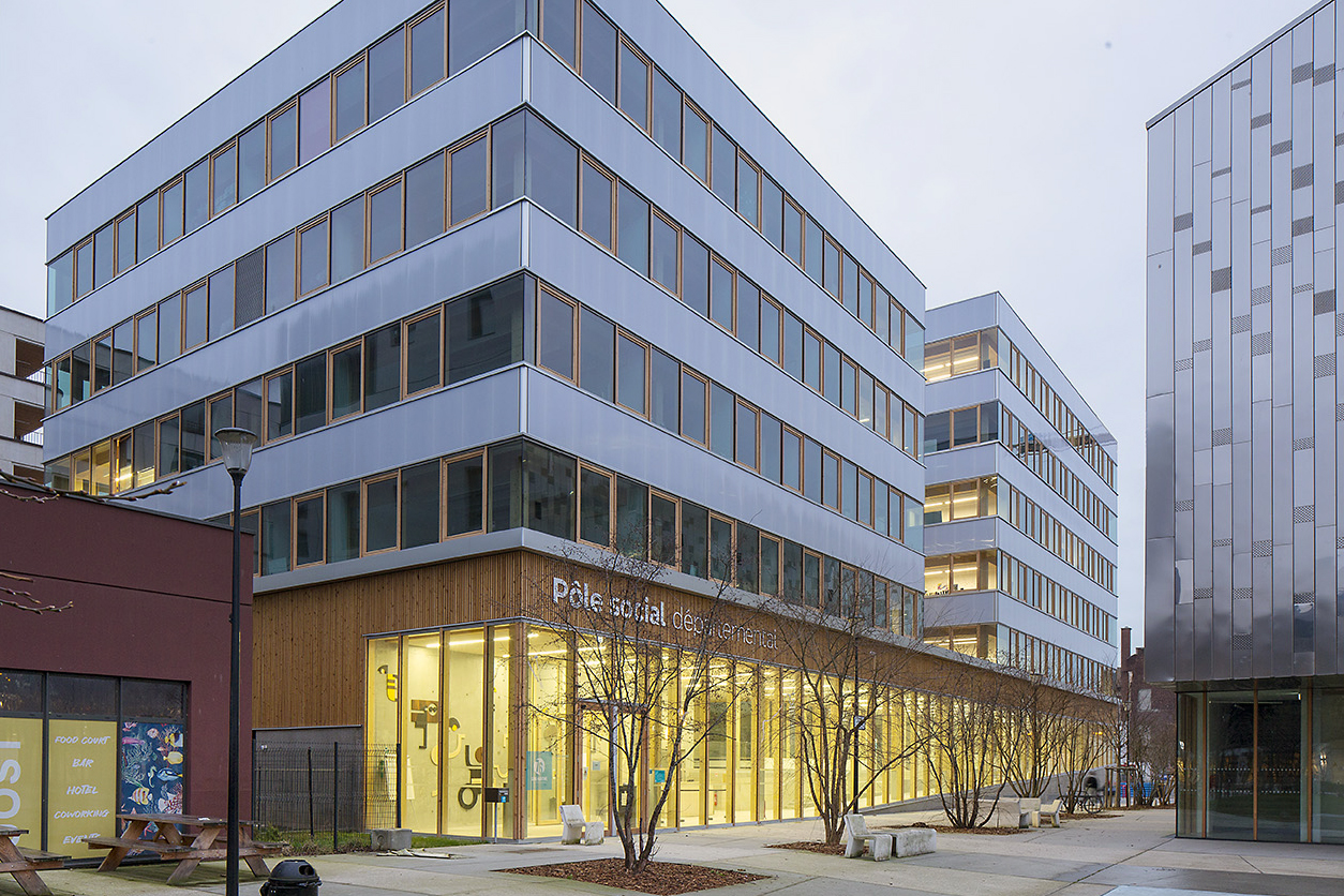 Construction d’un pôle social départemental accueillant l’ensemble des services à vocation sociale ou de santé du département et regroupant : Centre Médico-Social, PMI, Maison Départementale Personnes Handicapées, Unité Territoriale Action Sociale, Délégation territoriale et Aide Sociale à l’Enfance, sur une surface utile d’environ 3 900 m² dans le quartier Danton du Havre en pleine rénovation. La qualité d’accueil des usagers, pour une fréquentation occasionnelle ou régulière, ainsi que des conditions de travail confortables et fonctionnelles des agents constituent deux objectifs majeurs, indissociables et incontournables à ce type d‘équipement. Par une forme urbaine bienveillante et une matérialité chaleureuse, ce bâtiment a pour objectif de véhiculer l’image positive d’un équipement de service public au cœur de la ville.